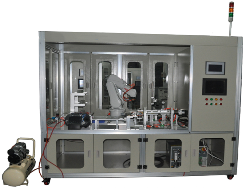 Consiste em uma placa de base fixa, bloco de posicionamento, cilindro de fixação, etc., para treinar o posicionamento preciso de robôs industriais.
