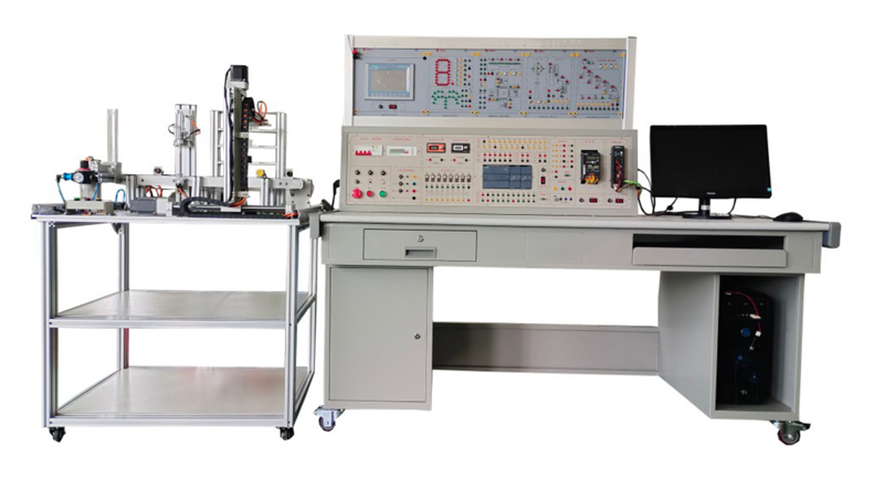 O dispositivo de treinamento abrangente do controlador lógico programável (PLC) consiste em um painel de controle, uma mesa de treinamento, um componente de treinamento principal, um módulo de treinamento, uma caixa de distribuição para o conversor de frequência, uma caixa de distribuição para a tela sensível ao toque, um motor AC/DC, uma unidade de barramento, um módulo de comunicação, um trilho guia para o motor, um mecanismo de medição de velocidade, etc.